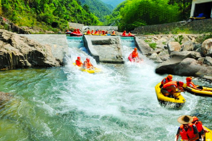 夏季怎么不玩水呢?吃完中饭本来想去宾馆附近的漂流玩一玩,经过多方问询,被告知附近的漂流不是很刺激,稍微缓和一点,为了不留下遗憾为旅程划上一个圆满的句号,大家一拍即合,选择了安吉最刺激的将军关漂流,尽管需要1.5小时的路程,但大家兴致勃勃还是充满期待,果然没有让我们失望,玩的刺激又开心!