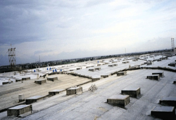 施工面积为160000平方米,采用的是水貂牌603氯化聚乙烯卷材、金球牌JQ-168纯丙烯酸弹性涂料。
