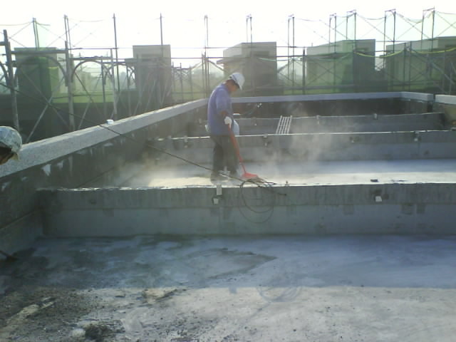 P.S. 屋頂防水层施作,要像水箱能裝滿水而不漏水。 屋頂防水工程 地板清洁此項为屋頂防漏工程,施作的材料为水性防水材,水性防水材与油性防水材的区别在于,水性可以在稍微湿的情況下也可以施作,而油性不行施作.