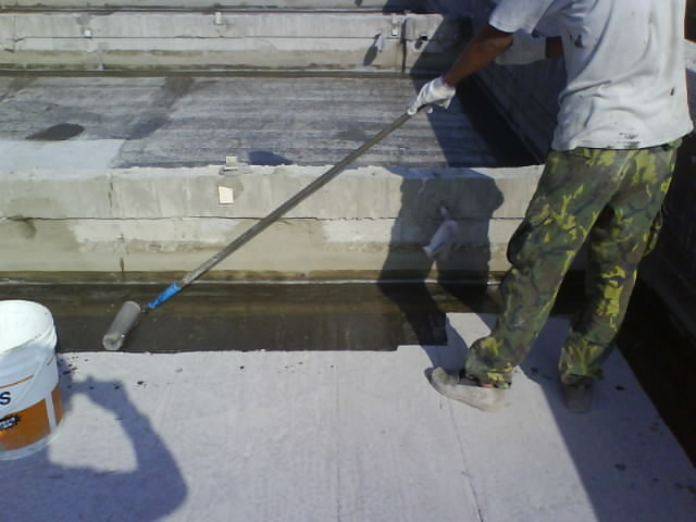 屋頂防水工程 底油涂布为使结构面与防水层間有良好的接著性.
