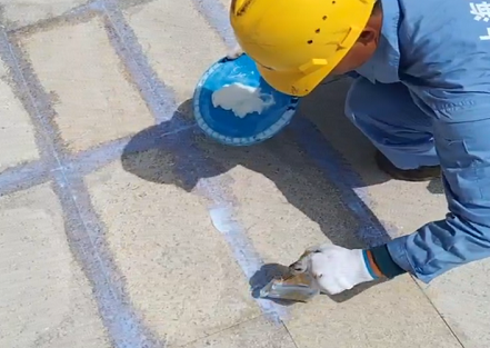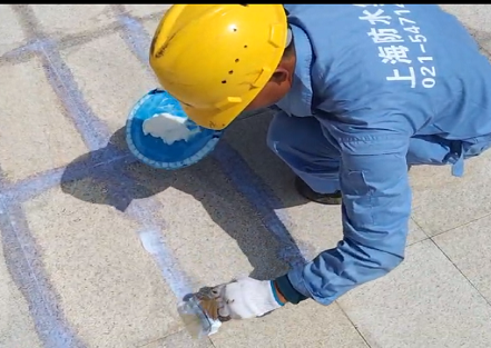 第二步:在瓷砖缝处涂刷浓缩厚质型涂料。刚开始涂刷时涂料是乳白色,干后透明色,涂刷第2或3遍时,一定要待前道涂膜干透现透明色时才能施工,也可大面积刮涂或刷涂施工。